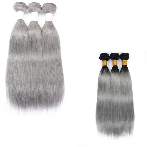 Gray 10A Grade Silver #1B/ Silver Straight 3/4 BUNDLES with CLOSURES &